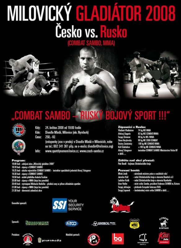 Včera jsme vyrazili na trochu odlišný zápas než je Muay-Thai a to na boj podel pravidel Pride. Za Como-3 gym v supertěžké váze bojoval Tomáš KOUDY Muszinský. Soupeře si opravdu nevybral lehkého a byl jím 4 násobný mistr světa MMA rus Sergej Chramov. Zápas se odehrával v bývalé vesničce kde byly kasárna pro ruské vojáky. Prostředí pro ruské bojovníky. Koudy bojoval ve Vale Tudo 5 zápasů 4 krát vyhrál. Porazil dokonce Láďu Žáka z Hanuman gym Praha. Ale čtyřnásobný světový šampion byl nad naše síly. Bojovalo se ve stoje první pěstní souboj vyšel pro nás vítězně a dokonce rusa pěkně zasáhl, ale druhá přestřelka skončila drsnou zlomeninou nosu pro Koudyho. Vítězem KO se stal rus 4x světový šampion v MMA Chramov. Ten večer bylo 7 zápasů MMA a nepodařilo se vyhrát ani jednomu českému bojovníkovi. A rusi končili zápasy vesměs v prvním kole. Koudy má oko a když se obujeme řádně do přípravy tak má před sebou velká vítězství.