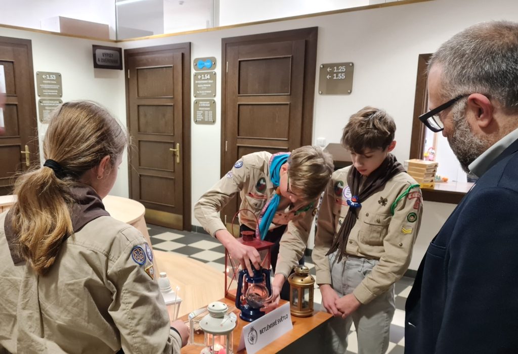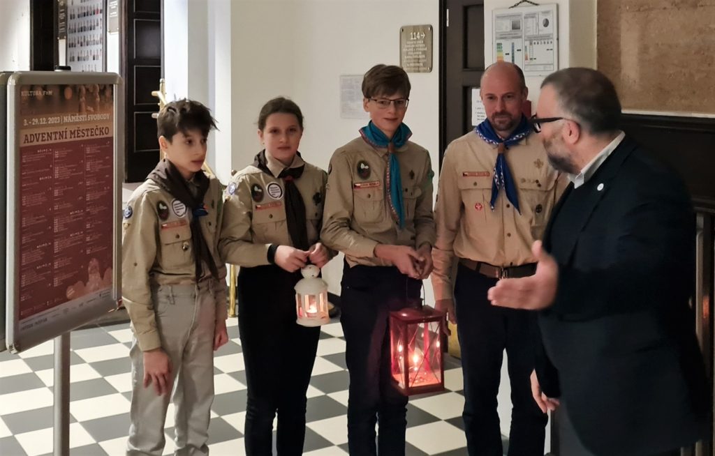 SKAUTI PŘINESLI NA RADNICI BETLÉMSKÉ SVĚTLO PRO VEŘEJNOST