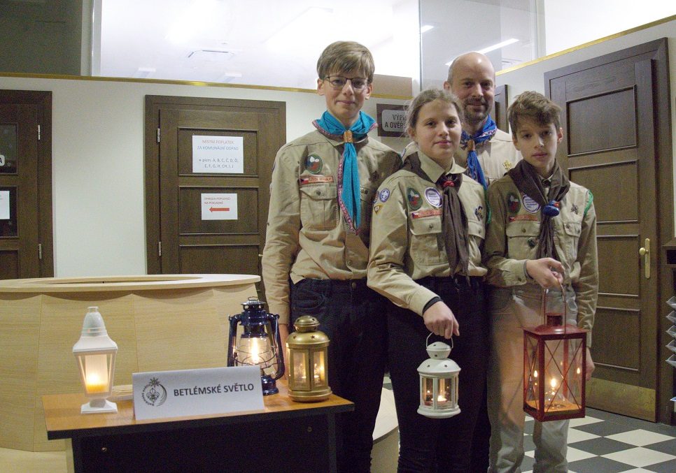 Skauti z místeckého střediska Petra Bezruče přinesli Betlémské světlo na magistrát ve Frýdku-Místku. Anna, Ondřej a Jakub Kleinwächterovi poté zapálil lucerničku se svíčkou a petrolejovou lampu, od které si zájemci mohou Betlémské světlo odpálit a odnést do svých domovů. Skautům a zastupiteli Marceli Sikorovi (KDU-ČSL) poděkovali primátor Petr Korč (Naše Město F-M) a náměstci Leona Sárkőziová, Radovan Hořínek (oba ANO 2011) a Miroslav Bártek (Naše Město F-M)