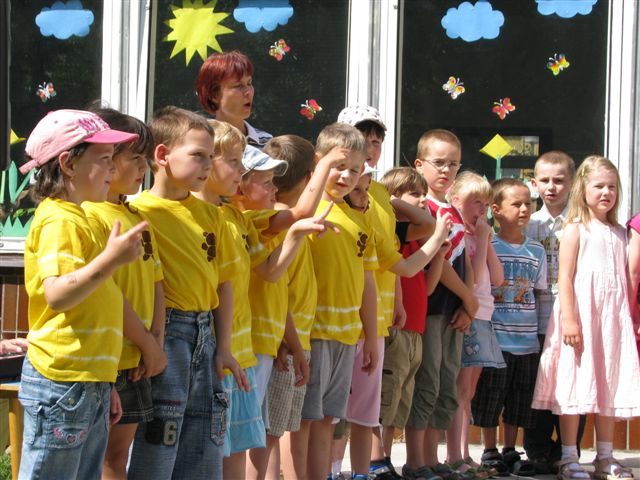 Krásné počasí, vyzdobená zahrada vonící grilovanými párky, bufet plný napečených dobrot od maminek, hudba, spousta rodičů a usměvavé děti – to byla Zahradní slavnost, kterou jsme se rozloučili ve čtvrtek 19.6.2008 se školkou a hlavně se 43 budoucími školáky.