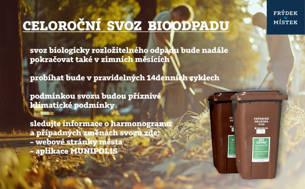 Svoz bioodpadu bude nadále pokračovat také v zimních měsících, v pravidelných 14denních cyklech. Podmínkou jsou příznivé klimatické podmínky.
