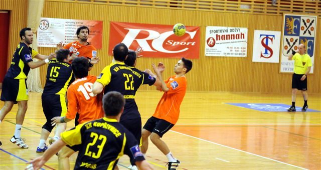 Vyrovnaný první poločas viděli diváci ve Frýdku- Místku,i když za stálého vedení domácího družstva. Především Hojník udržoval domácí stále o krok napřed před jejich regionálním sokem. Rozhodující náskok si domácí vybudovali už v úvodu druhé půle. Ve 45. minutě to bylo už 17:13 a minimálně tříbrankový náskok si domácí pak udržovali až do posledních minut. V posledních třech minutách už padaly branky jen do sítě Kopřivnice. Postarali se o ně Dyba s Loešem Petrovským, a tak nakonec frýdeckomístečtí házenkáři porazili svého soupeře šestibrankovým rozdílem.
