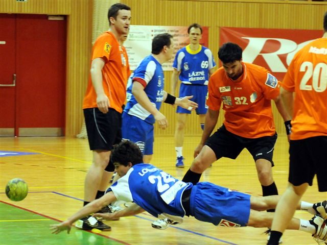 Úvodní minuty utkání začali lépe třeboňští. V 5. minutě vedli o dvě branky (2:4). Až ve 14. minutě dostal domácí do vedení Tomáš Hes (8:7). V koncovce prvého poločasu si naše družstvo vybudovalo třibrankový náskok (15:12). Vyrovnaný průběh druhého poločasu, kdy se střelecky přestalo dařit Hojníkovi, který svůj střelecký prach vystřílel v prvém poločase, znamenal že se o osudu utkání rozhodne v dramatické koncovce. Ve 26. minutě se hosté dotáhli na rozdíl jediné branky (24:23), ještě ve 30. minutě byl stav 25:24. O dvoubrankové vítězství domácích, rozhodl posledním gólem utkání Jan Holbein.