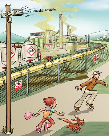 - vyhledejte vhodný úkryt v budově (ukryjte se ve vyšších patrech, utěsněte okna a dveře, vypněte klimatizaci a utěsněte větrací otvory, kterými může nebezpečná látka do místnosti vnikat),