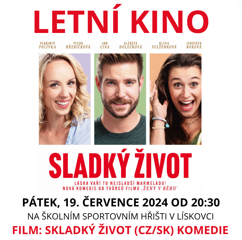 Promítat se bude (CZ/SK) komedie Sladký život (od 21 hodin). Vstup zdarma. V případě nepřízně počasí přesun do KD Lískovec.