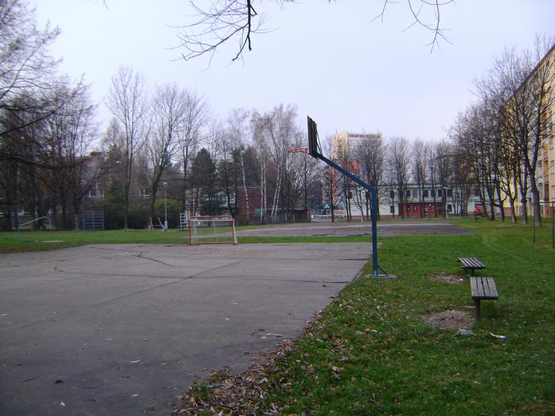 Stávající dvě sportovní hřiště s asfaltovým povrchem jsou již v nevyhovujícím stavu a budou odstraněny spolu se zastaralými kovovými herními prvky. Nově budou vybudována dvě dětská hřiště v prostoru většího sportovního hřiště. Jedno hřiště pro děti do 6 let a druhé pro děti od 6 do 12 let s herními prvky osazenými na plochu tlumící náraz. Na místě menšího sportovního hřiště bude vybudováno sportovní hřiště pro míčové sporty s umělým povrchem. Hřiště bude oploceno záchytným oplocením. K hřištím budou realizovány chodníky a budou osazeny lavičky a odpadkové koše.