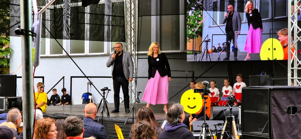 Program festivalu byl tedy velmi pestrý a jeho základem i vrcholem bylo téměř dvouhodinové vystoupení na pódiu postaveném na školním dvoře, které mohli diváci zároveň sledovat i na LED obrazovce. Díky profesionálnímu obrazu a zvuku měli možnost si opravdu vše dostatečně užít. Součástí rozmanitých vystoupení byly nejen tance, zpěv, sport, angličtina, scénky žáků, ale i pěvecké a taneční výstupy pedagogů, vše předvedené téměř na profesionální úrovni.