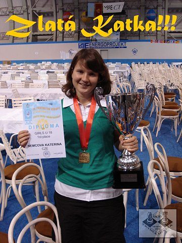 Poslední kolo bylo nadmíru dramatické, protože naše Kateřina Němcová bojovala o titul evropské šampiónky v kategorii děvčat do 18 let. Po nervy drásající šachové bitvě jsme se dočkali – Kateřina Němcová získává zlatou medaili!