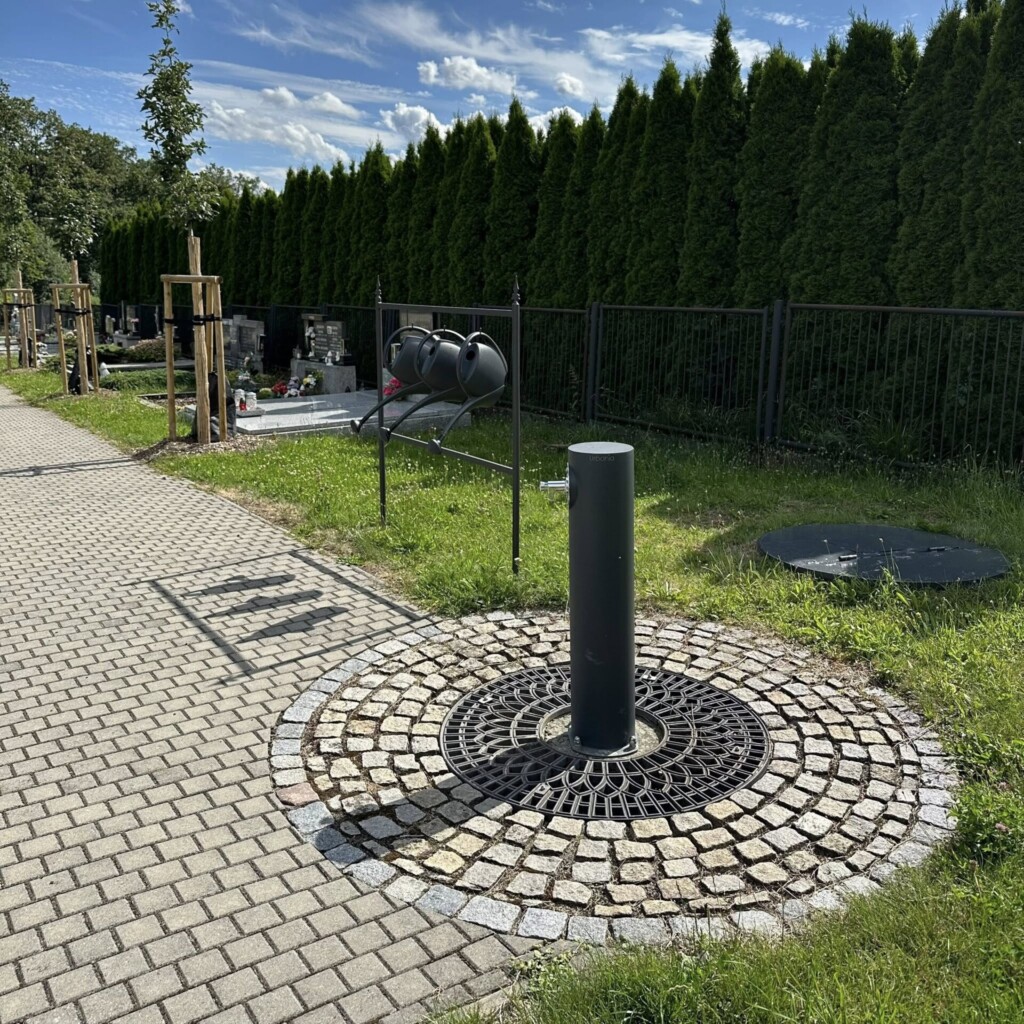 Na základě podnětu místní občanky jsme k prameníkům, které byly na katolickém hřbitově instalovány v loňském roce, nově doplnili kovové stojany s plastovými konvemi. Dříve byly k dispozici pouze kovové konve, které však byly například pro seniory příliš těžké – plastové konve jsou výrazně lehčí a praktičtější.
