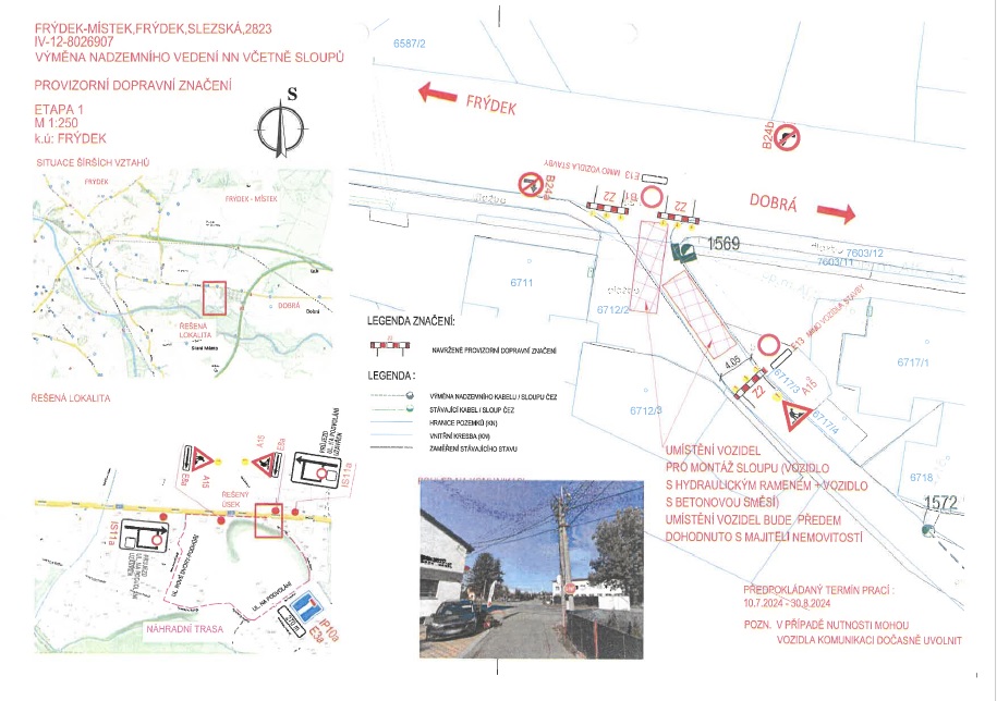 Doba trvání uzavírky: 12. a 13. a 20. srpna 2024. Důvodem je rekonstrukce nadzemního vedení nízkého napětí.