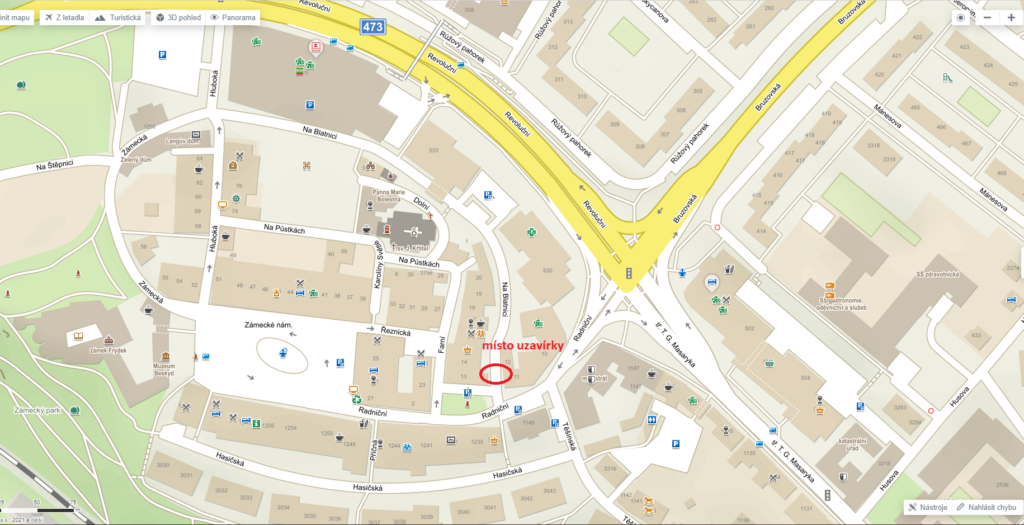 Uzavírka komunikace je nutná z důvodu realizace stavby provádění stavebních prací – napojení objektu Radniční č.p. 13 na páteřní vedení horkovodu.