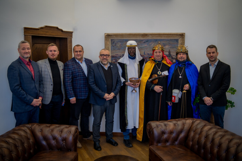Foto: Společná fotografie z letošní tříkrálové návštěvy v budově magistrátu.