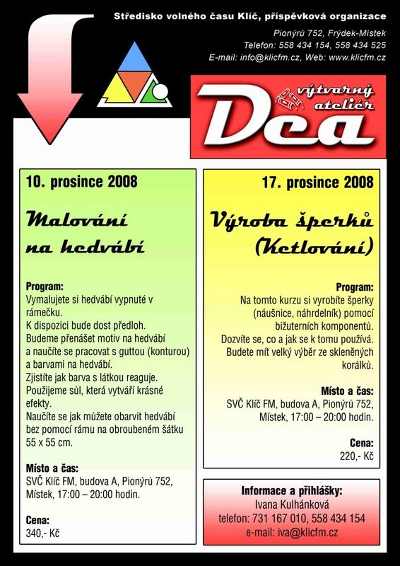 Veškeré informace o Výtvarném ateliéru DEA získáte v SVČ Klíč FM nebo je najdete webu www.klicfm.cz.