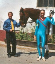 Dnes, 5. 9. 2002 v 6.00 hod. ráno vyjel voltižní tým našeho ranče reprezentovat republiku na Světové jezdecké hry Jerez de la Frontera ve Španělsku. Loňský mistr republiky Daniel Jablonský s koněm Brokát se nominoval mezi tři nejlepší jednotlivce a pod vedením trenérky Jarmily Jablonské odjeli ráno do Tlumačova, odkud vyjíždí celý reprezentační tým. Cesta do Jerez de la Frontera je dlouhá 3 500 km a česká výprava pěti koní pojede s přestávkami 5 dnů, protože koně musí dorazit na místo her v dobré kondici. Náš tým sice má bohaté mezinárodní zkušenosti, v roce 2000 se účastnil Mistrovství světa v německém Manheimu, přesto se musí vypořádat s velmi náročnými podmínkami dopravy. Přejeme jim hodně štěstí.