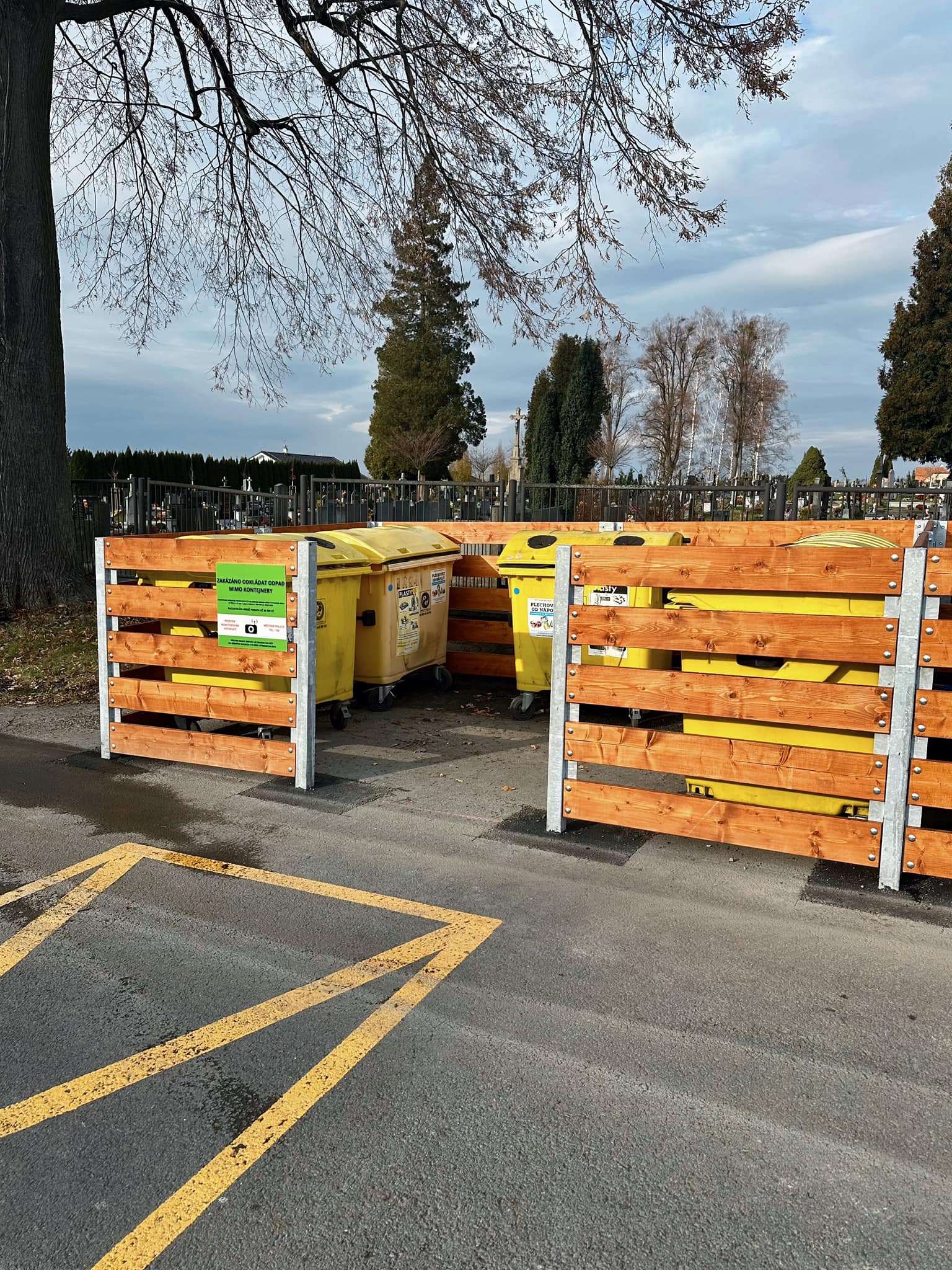 Během října a listopadu jsme zkulturnili dvě stanoviště kontejnerových stání – u katolického hřbitova a kulturního domu. Díky novým ohradám už kontejnery nepůsobí tolik rušivě a nepořádek se nerozfoukává do okolí.