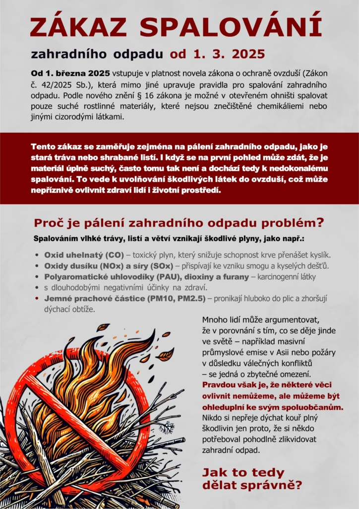 Od 1. března 2025 nabyla platnosti novela zákona o ochraně ovzduší a s ní také změna podmínek ve spalování rostlinného materiálu v otevřených ohništích.