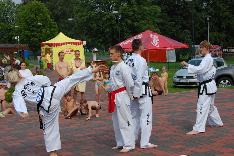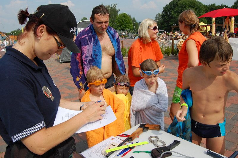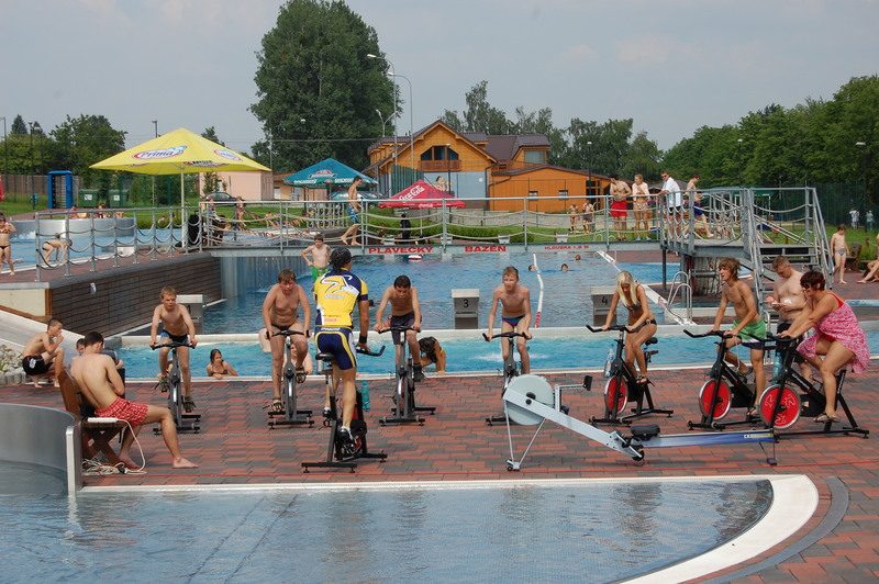 „Už jsme si za těch pár let provozu zvykli, že počasí je naprosto nevyzpytatelné a statisticky nemůžeme naplánovat vůbec nic. Jednou je povedený červenec, jindy srpen, někdy začne sezona příznivá ke koupání mnohem dříve, jindy se zase protáhne do podzimu. Každopádně ale potřebujeme slunečné dny hlavně o prázdninových měsících, pak už nám slunce zásadně nepomůže, je to jako s lyžováním v dubnu,“ vysvětlil Petr Slunský, ředitel městské společnosti Sportplex, která připravila na úvod prázdnin pestré odpoledne například se zmrzlinou pro děti zdarma. Byly připraveny soutěže pro děti i dospělé, ukázky dětského aerobiku, disco tanců i bojového umění. Zájemci si mohli vyzkoušet aquaerobic, spinning nebo potápění. Živo bylo i u stanoviště městské policie, kde si návštěvníci aquaparku mohli prohlédnout výzbroj a výstroj, ale třeba i čtečku čipů pro psy. Za zodpovězení testových otázek čekala na děti odměna, spoustu záludných otázek však musela zodpovědět i policejní preventistka Lenka Biolková, která musela slovně pacifikovat pubertální dorost. V nejhorším se nebála ani vyzvat k souboji na spinningových kolech, která zájemci roztáčeli opodál, to když se některým zdálo, že by v sedle mohli mít proti cyklohlídkám městské policie šanci.