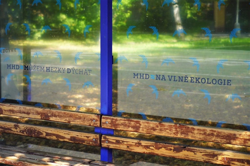 „Prosklené plochy jsou pro ptáky nebezpečné. Letící pták v nich nevidí překážku a má za to, že může pokračovat v letu. Docela často se stává, že do prosklené zastávky narazí, zraní se a následně i uhyne. Abychom tuto skutečnost co nejvíce eliminovali, necháváme naše prosklené autobusové zastávky polepit fólií s celoplošným potiskem siluet ptáků doplněným slogany a logem města. Polep je volen tak, aby na skle vytvořil efekt zábrany, ale přitom zastávku nezatemnil,“ uvedl náměstek primátora Karel Deutscher.