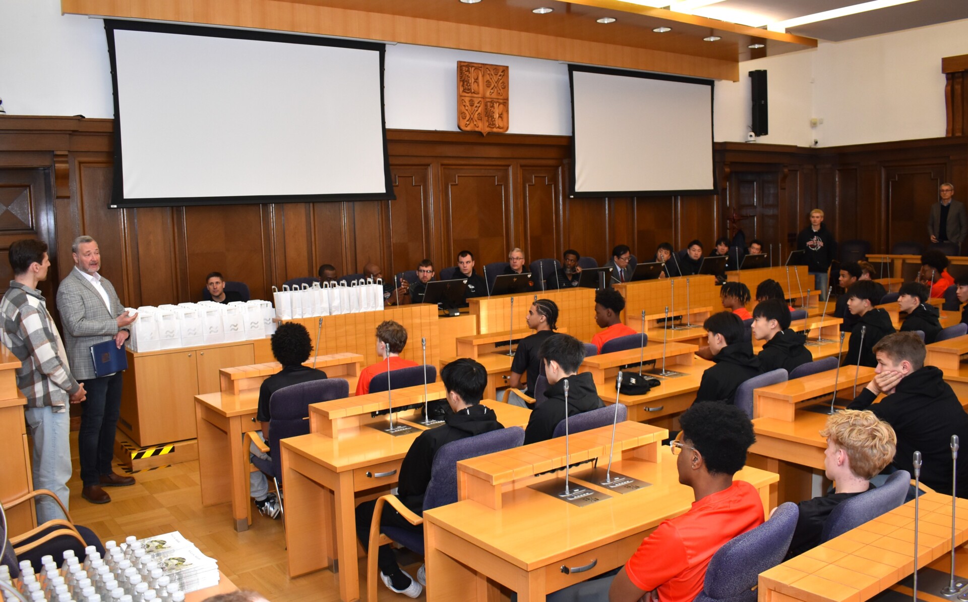Účastníci mládežnického basketbalového turnaje čtyř zemí ze tří kontinentů Basketpoint Global Friendship Cupu 2026 dorazili do Frýdku-Místku. Na magistrátu je přijal náměstek primátora pro školství, mládež, tělovýchovu a sport Tomáš Pyško (Naše Město F-M)