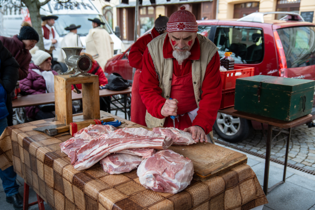- Návštěvníci si mohou od brzkých ranních hodin zakoupit na jarmarku tradiční farmářské, zabijačkové produkty od mistrů řezníků a také další, zejména regionální produkty a pochutiny.