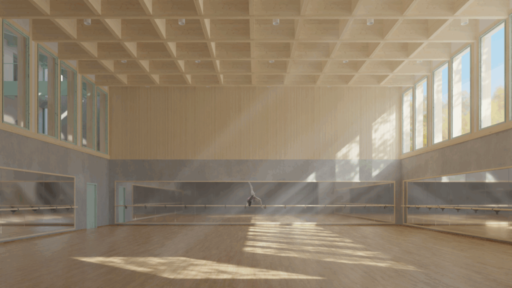 Stávající objekt bude restaurován a zateplen z vnitřní strany zdiva a nad krokvemi, což umožní zachování historického vzhledu fasád a zároveň prezentaci krovu v interiéru ateliérů. Nová přístavba je navržena ze dřeva a je efektivním řešením, umožňujícím rychlou