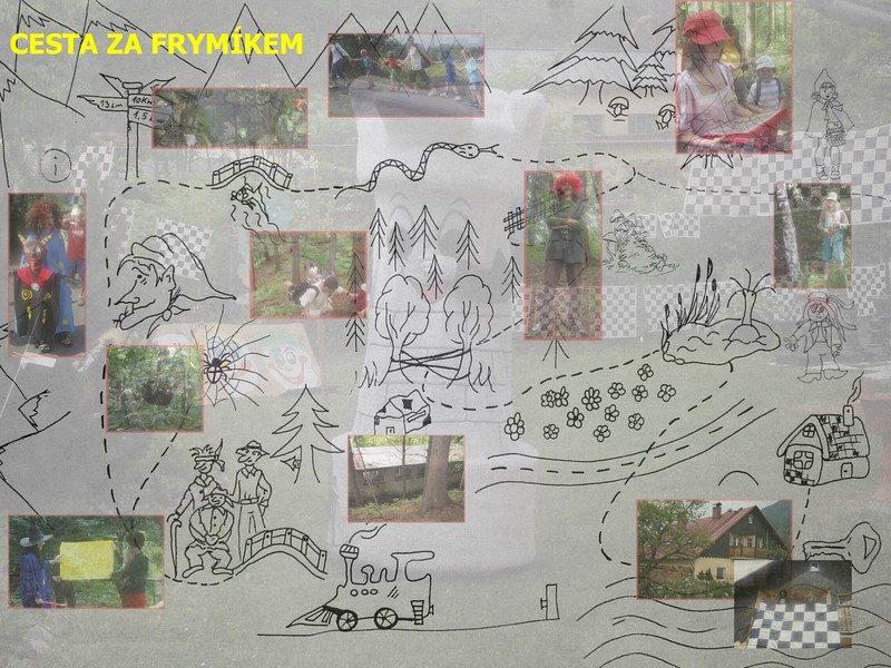 Ale abychom to neměli takové jednoduché, nachystal si pro nás spoustu úkolů, překážek, u kterých dohlíželi jeho pohádkoví kamarádi – dlouhý, široký, čarodějnice, uspávač hadů, červená karkulka, lesní skřítek, vodník Brekeké. Protože mapa byla v jistých místech nepřehledná, seslal nám hodného čaroděje s malými horskými skřítky, aby nám pomáhali v Cestě. Děti společně s dospělými po třech hodinách urputného hledání se dostali k cíli, kde je již vítal s otevřenou náručí ten, kvůli kterému to všechno podstoupili – FRYMÍK, ve svém království.