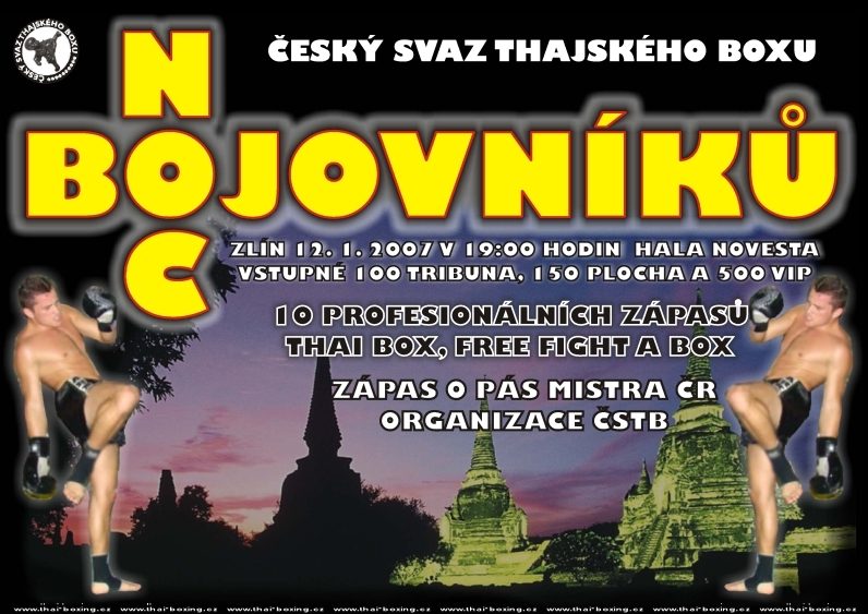 12. ledna se konalo gala ve zlíně v hale Novesta. V naplněném stadionu se boxovalo 7 zápasů v Muay-Thai a 1 v supertěžké váze v boxu. Vojta nastoupil k svému prvnímu zápasu na takovém galavečeru. V zápase šlapal a pěkně poslouchal. Že by se rodila nová hvězda v Como-3 gym??? Vojta zvítězil na bojovníkem z Muay-Thai Hodonín RSC v druhém kole. Kromě dalších zápasů které byly velmi povedené diváci viděli souboj o Titul Mistra republiky v Thajském boxu ve váze do 65 kg. V něm se utkal Jan Prosser z Belicus gym proti Zdeňku Pernicovi z Muay-Thai Brno. Bojovníci svedli vyrovnaný zápas ve kterém zvítězil přesvědčivější Pernica z Brna. Mistrem republiky ČSTB je Zdeněk GAUNY Pernica Muay-Thai Brno. Poděkování za pomoc u ringu patří Kubovi Gazdíkovi, Patriku Neuwirtovi a celé jeho rodině. Patrik do zápasu nenastoupil protože mu nepřijel soupeř. Como VICTORY. Výborná gala, plná hala, ČSTB hala …..