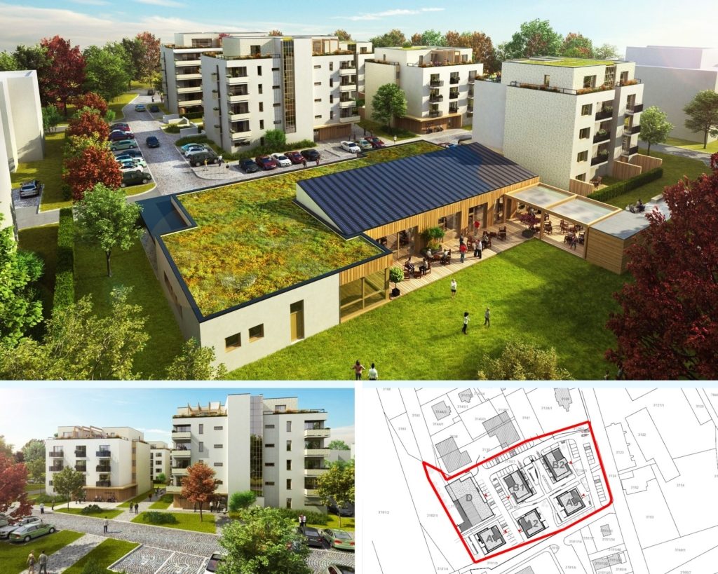 V této variantě je navrhováno také pět obytných domů a Centrum denních služeb pro seniory Domovinka.