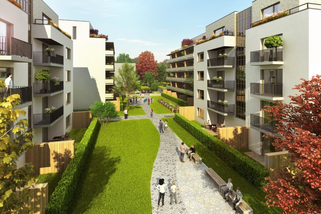 Byty v domech budou orientovány na dvě světové strany, jihozápadní a severovýchodní. Budou mít balkón nebo střešní terasu. Přízemní byty budou mít francouzská okna, takže z nich bude možný vstup do mini předzahrádky. Navrženy jsou byty ve velikosti 1+kk a 2+kk.