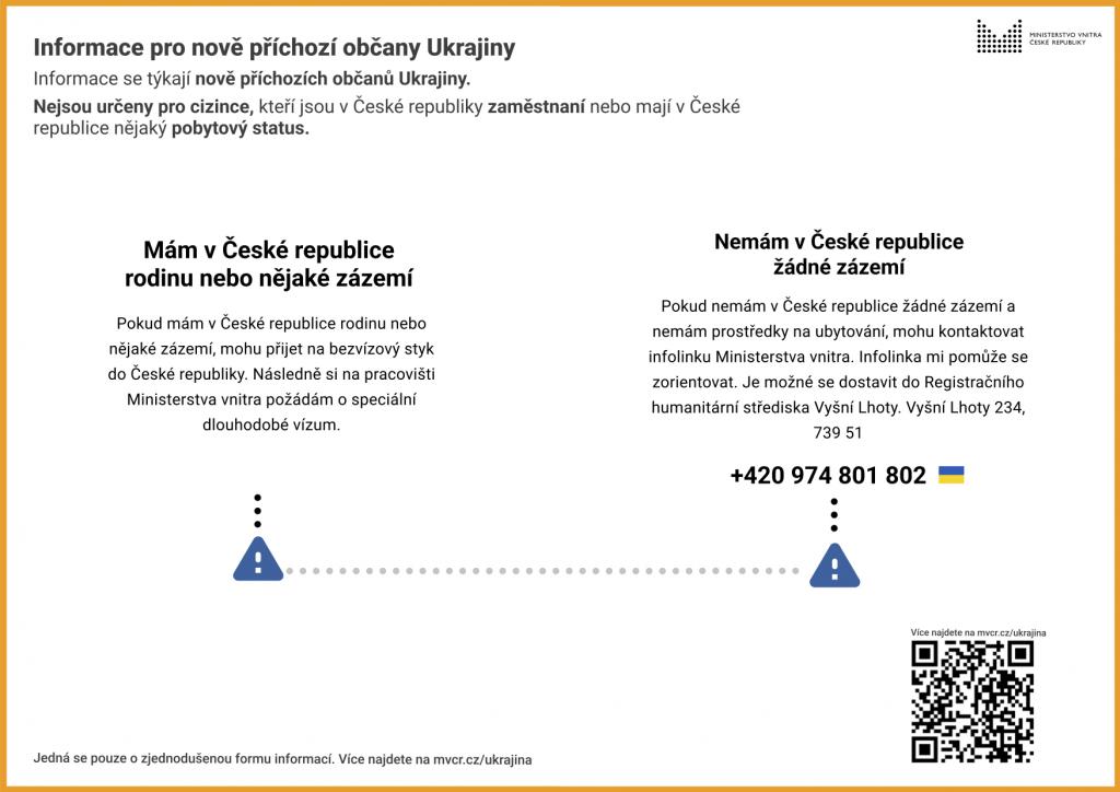 НФОРМАЦІЯ ДЛЯ ГРОМАДЯН УКРАЇНИ В ЧЕХІЇ У ЗВ'ЯЗКУ З КОНФЛІКТОМ В УКРАЇНІ: Informace pro občany Ukrajiny – Ministerstvo vnitra České republiky (mvcr.cz)