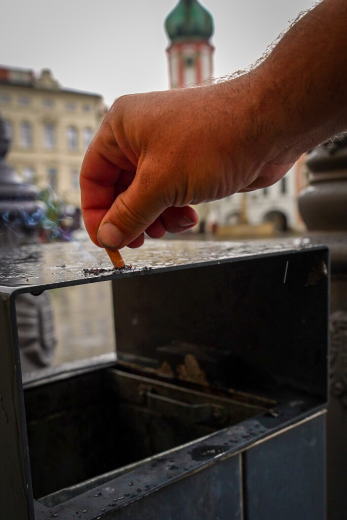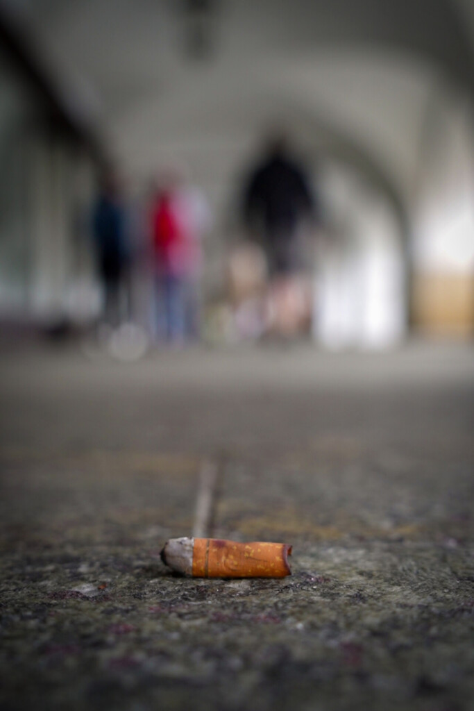 Littering znamená odhazování drobných odpadků (nedopalky, obaly) na zem místo do koše, což znečišťuje prostředí a zvyšuje náklady na úklid.