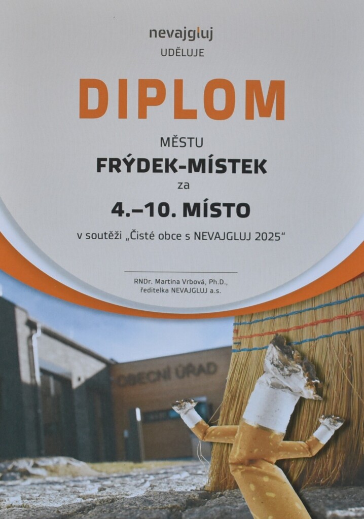 Město Frýdek-Místek si na své konto připsalo další úspěch. Tentokrát v soutěži Čisté obce s NEVAJGLUJ 2025, do které se zapojilo osvětovým videem s názvem Malé, ale tolik škodlivé. Video získalo ocenění za originální pojetí upozornění na velkou škodlivost na první pohled drobných cigaretových nedopalků, a to nejen pro městské prostředí, ale i pro rostliny a zvířata.