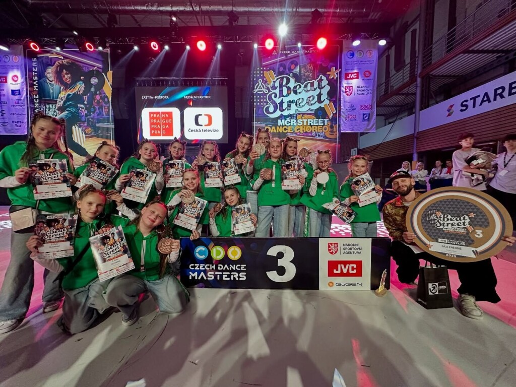 Dalšího úžasného zlatého triumfu dosáhli junioři také na soutěži World of Dance Czechia, kde získali za Českou republiku nominaci na Mistrovství světa, které se bude konat v Los Angeles. A to ještě není všechno – město má nově i mistry ČR v dospělé extralize a další zlaté medaile v základní lize hip hopu, kde uspěli i ti nejmladší.