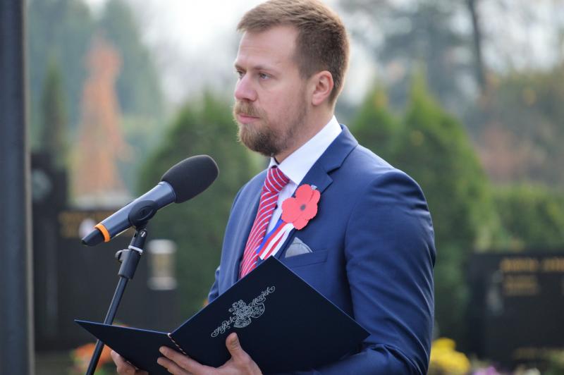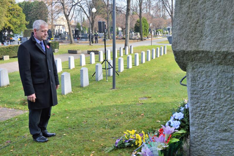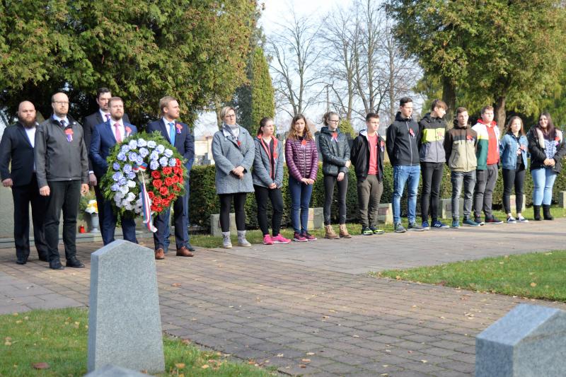 „Ať už je název tohoto dne jakýkoli, pro všechny je to bezpochyby den radostný. Protože 11. listopadu 1918 skončila I. světová válka. V této válce zahynulo 16 milionů lidí, 21 milionů bylo zraněno. Další se vraceli domů bez fyzického poškození, mnozí ale s hlubokými ranami na duši. Váleční veteráni. Hrdinové, kteří denně bojovali s nepřítelem, ale také s nedostatkem všeho druhu. Za všech okolností projevovali velkou osobní statečnost. Po válce si tuto vlastnost přenesli z bitevního pole také do soukromého života, když museli čelit tíživým existenčním podmínkám. Ačkoli situace byla velmi složitá a svět válkou vyčerpaný, lidé se přesto snažili navrátilcům pomoci. Ve prospěch veteránů byly zakládány sbírky a fondy, pořádány dobročinné akce. Tato pomoc přetrvává v různých formách dodnes,“ připomněl primátor Michal Pobucký, že v České republice žije v současné době asi 700 bývalých vojáků z druhé světové války a na 20 000 novodobých válečných veteránů. Těm všem vyjadřuje radnice každý rok při této příležitosti svou hlubokou úctu a poděkování za jejich službu vlasti.