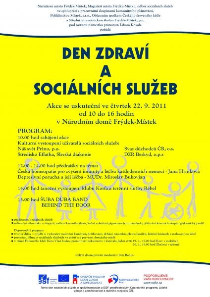 Zájemci budou moci shlédnout film o sociálních službách ve městě a o prevenci domácího násilí nebo vyslechnout přednášky o homeopatii nebo léčení depresivní poruchy. Ve 14 hodin zpestří program taneční vystoupení klubu Kosťa a terénní služby Rebel. V 15 hodin zahraje Šuba Duba Band a Behind the Door.