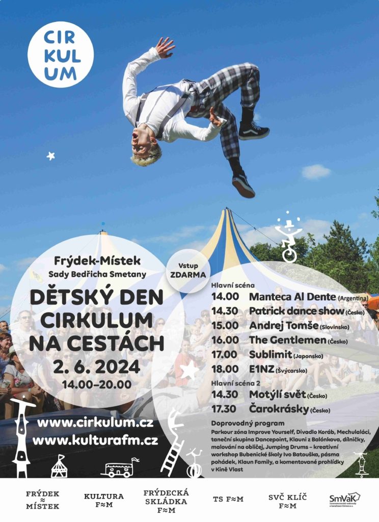 Za dětmi ve Frýdku-Místku přijede nový cirkus. Město prostřednictvím své příspěvkové organizace Kultura FM již podruhé přizvalo k oslavě svátku všech dětí festival Cirkulum. Pro nejmenší jsou připravena divadelní představení, program v šapitó, akrobatická vystoupení, workshopy a také dětské filmy i doprovodný program v Nové scéně Vlast.