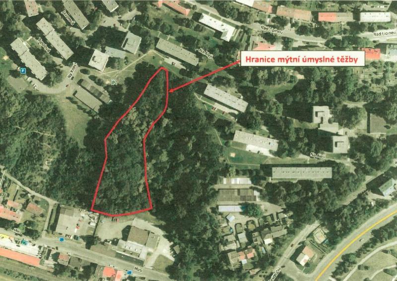Lesy ČR mají na podzim v plánu vytěžit cca 0,7 ha v lokalitě od Torolly na ulici Míru směrem k ulici Na Aleji 2715 – viz přiložené schéma. Jedná se o porost starý 186 let. Některé stromy jsou již přestárlé a provozně nebezpečné. Po případném vytěžení vznikne v místě holina, kterou by měly Lesy ČR podle lesního zákona do dvou let od vytěžení zalesnit.