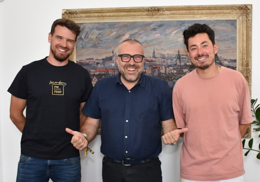 Primátor Petr Korč (uprostřed) s ředitelem festivalu Mikulášem Dohnalem (vlevo) a Miraiem Navrátilem.