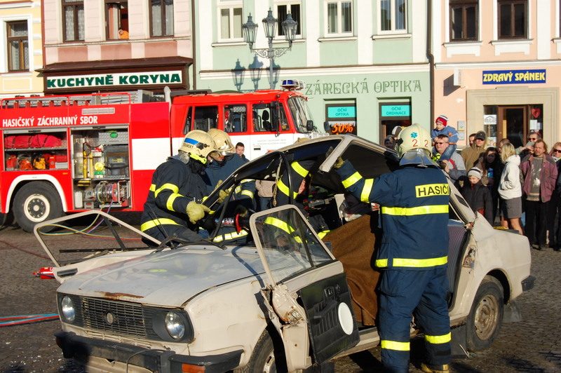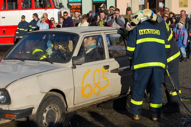 Primátorka města Eva Richtrová slavnostně předala dobrovolným hasičům novou cisternu, a protože jí k šampaňskému ke křtu nikdo nepodal kladívko, proběhlo zasvěcení vozu bez nehody. Pak už se jich pár objevilo, ale všechny byly pouze ilustrované, aby si veřejnost udělala obrázek, jak to při zásazích hasičů funguje. Ukázky provázel zasvěcený komentář i pichlavé poznámky, ke kterým se přidávali přihlížející. Pod palbou byl zejména výkon figuranta, který měl mít v havarované škodovce těžké zranění páteře, což mu ovšem nevadilo ve žvýkání žvýkačky. Že lidé prezentaci záchranářského umu uměli ovšem vzít i vážné, o tom svědčil jejich potlesk, když například ze škodovky hasiči vystřihli kabriolet a nešťastníka vyprostili z útrob vraku. „Lidé vnímají náročnost hasičského povolání a určitě oceňují i dobrovolné hasiče, kteří pomáhají profesionálům. Jsme rádi, že jsme jim konečně dopomohli k novému hasičskému vozu, byť je na místě přát si, aby jej museli využívat co nejméně,“ řekla primátorka Eva Richtrová. Její slova potvrdil i radní Ivan Vrba: „Dobrovolní hasiči udělají ve městě spoustu práce, i té méně viditelné. S novým vybavením navíc mohou úspěšně zasahovat i u složitých případů.“