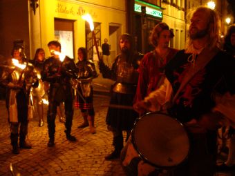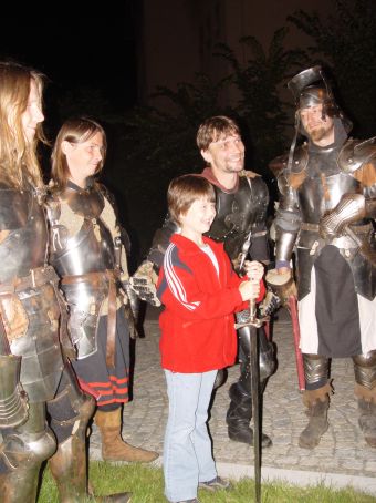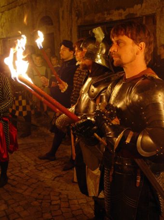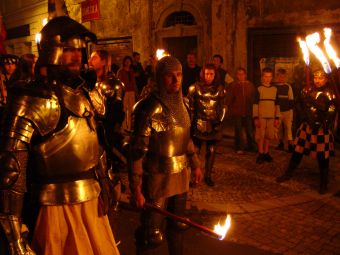 Kromě světel na obloze stejně intenzivně blikaly večer i blesky fotoaparátů vedle svítících mobilních telefonů – každý si chtěl zvěčnit trochu historické atmosféry na památku. Rytíři si zapálili louče a sešikovali se na historickém frýdeckém náměstí, aby se pak za halasného bubnování vydali na připravené pódium. To na začátku opanovaly břišní tanečnice a pak teprve mohli předvést, co ve zbroji dovedou, rytíři a šermíři. Večerní ohňový průvod a rytířský turnaj byl současně pozvánkou na neděli pod heslem „Sláva rytířům aneb Frýdecká rytířská klání“. Celodenní bohatý program s historickou tématikou přinese například sokolníky, historický jarmark, rytířské hry, dobové hudební a taneční skupiny, rytířská klání a souboje, nejrůznější představení, historickou střelnici a katovnu i dobové taverny s občerstvením.