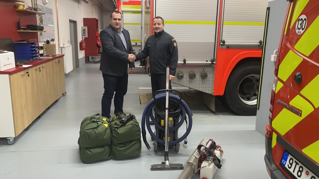 „Předané vybavení pro zásah na nebezpečnou látku zahrnuje dekontaminační generátor teplého aerosolu, průmyslový vysavač, detekční přístroj a protichemické obleky. Paskovští hasiči si tak mohli jednotku dovybavit speciální technikou pro nově svěřenou oblast a nyní budou s plným vybavením vyjíždět k nebezpečným chemickým zásahům. Zároveň jsme tímto krokem podpořili efektivní rozdělení specializací, spolupráci a připravenost jednotek požární ochrany v našem regionu,“ dodal náměstek Lukáš Kmec, který techniku předal místostarostovi Paskova panu Zdeňku Bělíkovi (vpravo na fotografii).
