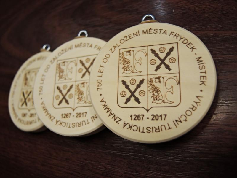 Již v loňském roce vydalo Beskydské informační centrum Frýdek-Místek výroční známku, která tento rok bude připomínat. Dřevěnému kolečku tak dominuje znak města Frýdku-Místku a jedna ze symbolik města – bazilika minor Navštívení Panny Marie, která je jedinou bazilikou v Moravskoslezském kraji. Sběratelský artefakt je k dostání za 30 korun na pobočkách Beskydského informačního centra ve Frýdku, Místku, Frýdlantu n.O. a Ostravici.