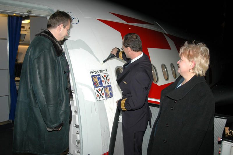 České aerolinie mají ve zvyku pokřtít letadlo názvem českého či moravského města, když se jejich letadlový park rozroste o další letoun. Před koncem roku se dostalo i na Frýdek-Místek. Jeho první písmenko se aerolinkám „hodilo do krámu“ – spolu s Poličkou Frýdek-Místek vytvořil stylové a symbolické PF.