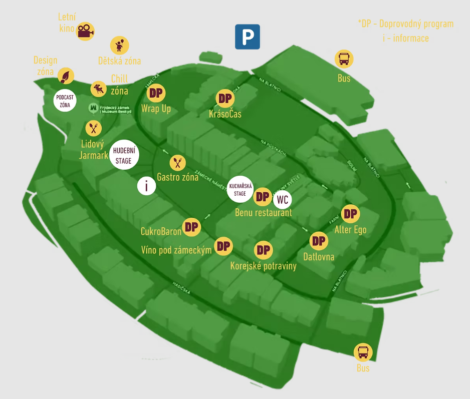 Festivalové menu připraví i okolní podniky – například WrapUp nabídne ukázky jídel z jedlých květů, Korejské potraviny ochutnávky yuzu piva, kimchi i exotické zmrzliny. AlterEgo osvěží koktejly a rumy a Víno Pod Zámeckým potěší milovníky vína. Krásočas chystá tvůrčí workshop Sůl nad zlato.