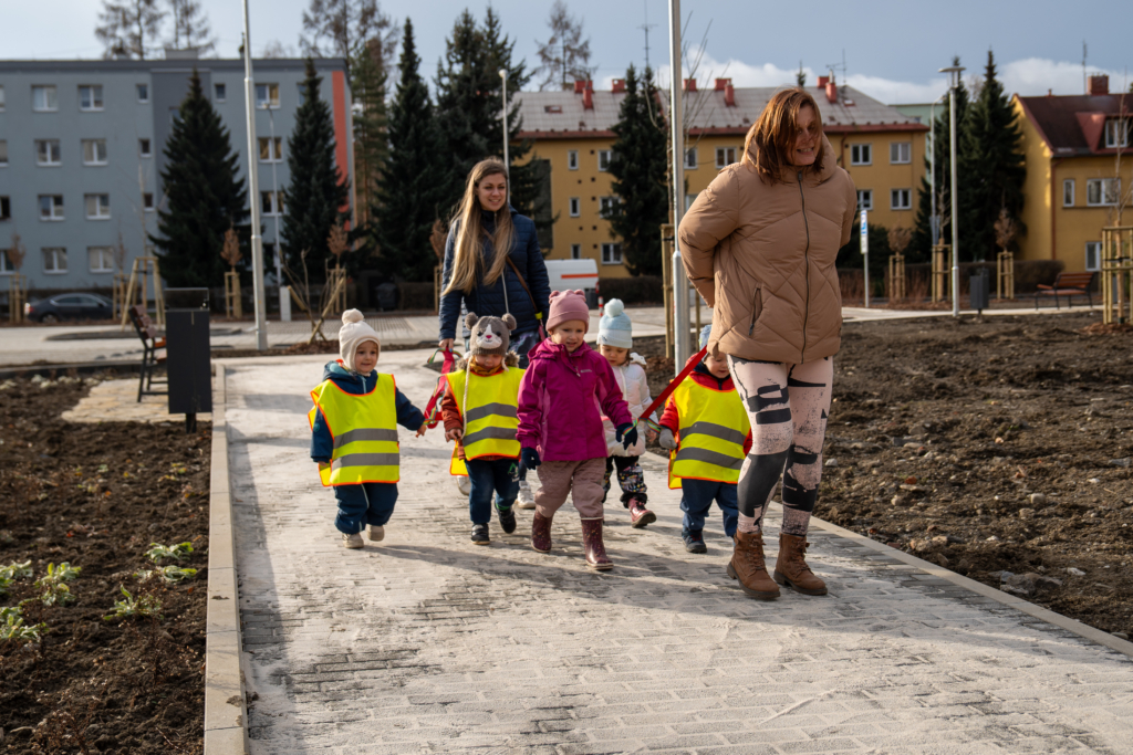 „Chodníky v parku kopírují již dříve vyšlapané cesty. Chodci si mohou posedět a odpočinout na lavičkách pod zelení,“ doplnil náměstek Jiří Kajzar.