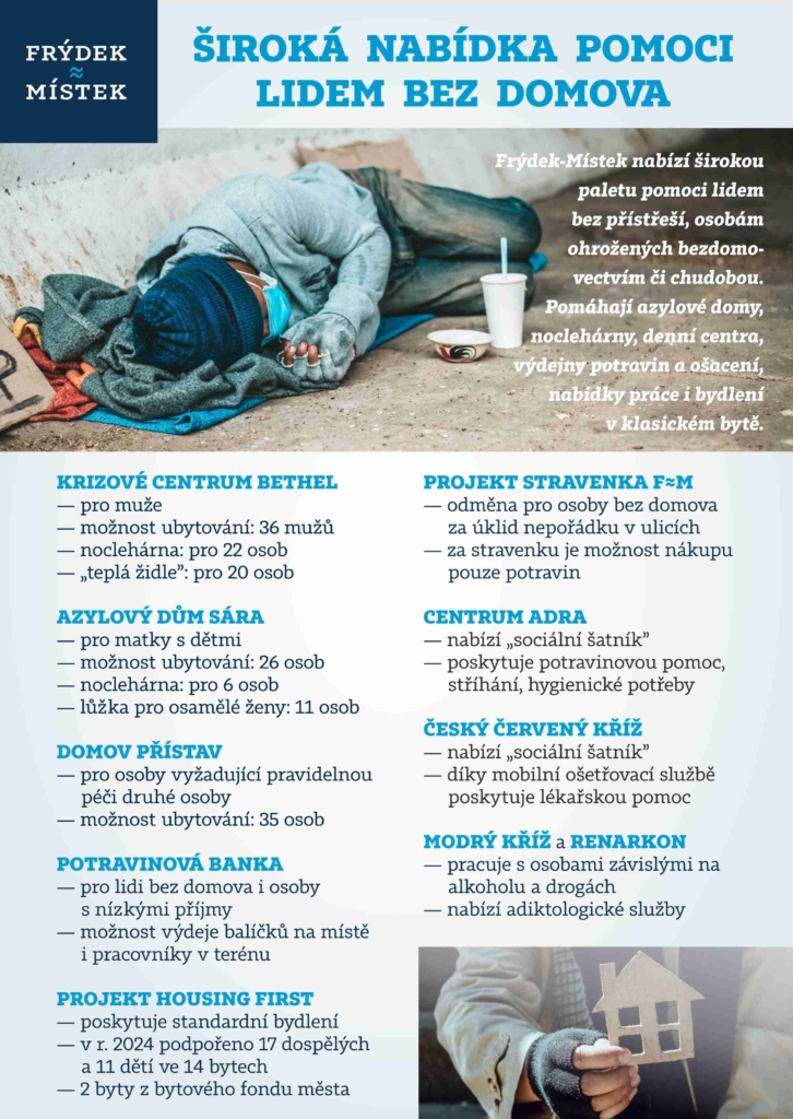 FRÝDEK-MÍSTEK ZAJIŠŤUJE ŠIROKOU NABÍDKU POMOCI LIDEM BEZ DOMOVA. POKUD JI CHTĚJÍ