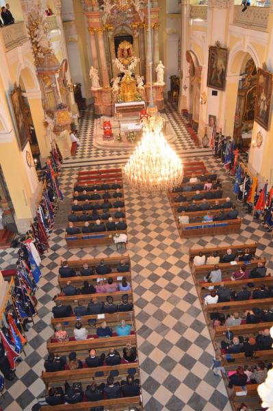 Tři nové prapory se v bazilice Navštívení Panny Marie při slavnostní mši dočkaly požehnání a všechny měly souvislost s Frýdkem-Místkem, protože patřily místním krajským hasičům, zdejší požární škole a sboru dobrovolných hasičů z Lískovce.