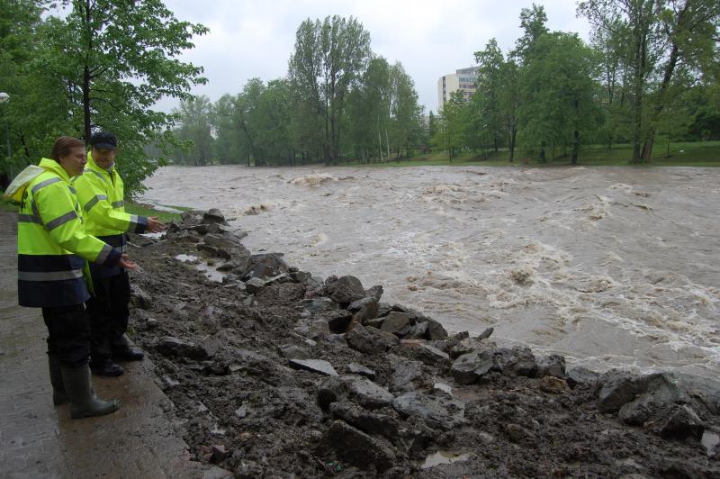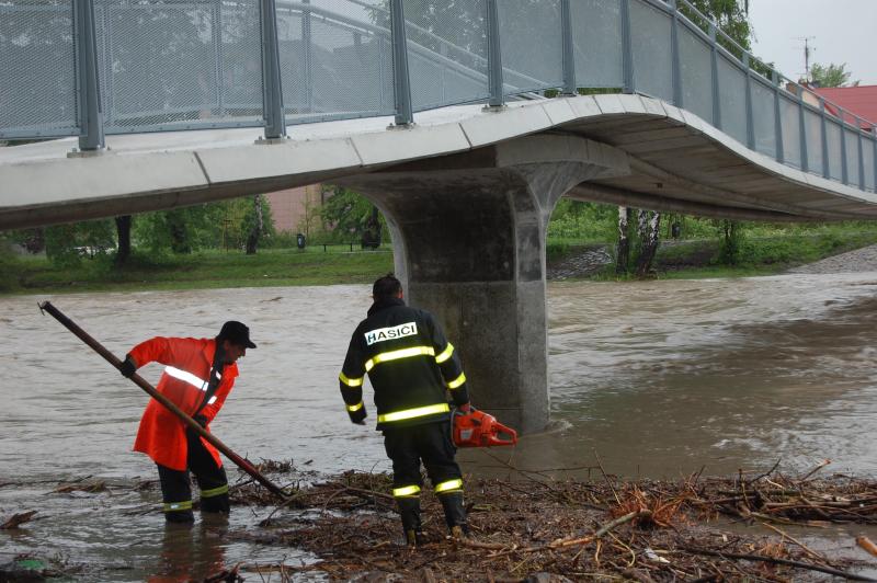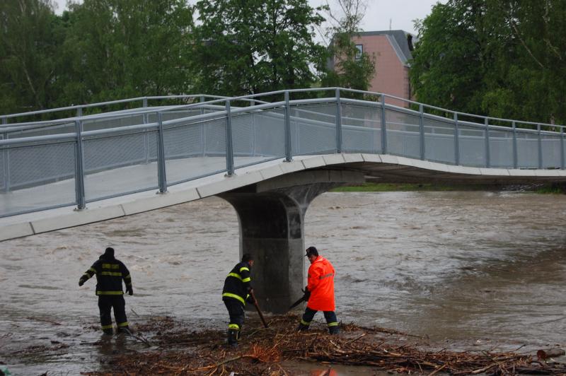 „Máme tady dobrovolníky z Čeveného kříže, pomáhají také lidé z našich městských společností,“ sdělil kolem poledne náměstek primátora Michal Pobucký. V tuto dobu měli napilno také hasiči u nově vybudované lávky pro pěší, kde odstraňovali nánosy dřevin, i za pomocí motorové pily. „Pokud voda stoupne, budeme muset před zanesením hlídat zejména červenou lávku „u krmelce“, která je níž nad hladinou vody. Jakékoliv zanesení, například větším stromem, může být velmi nebezpečné,“ doplnil náměstek primátora Petr Cvik.