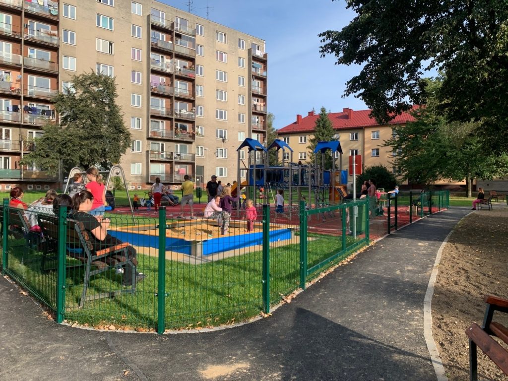 Hřiště ve vnitrobloku Ostravská je v obležení dětí