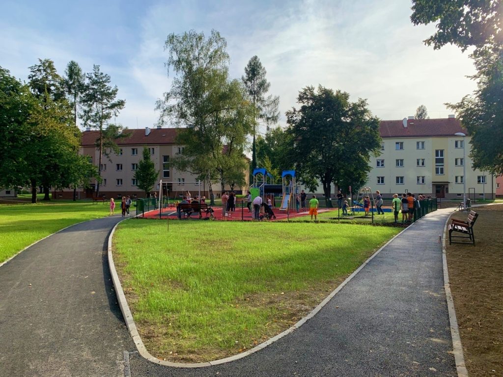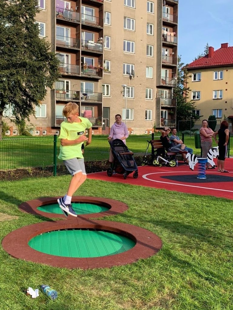 „Na hřišti nechybí pískoviště, kolotoč, houpačky ani prolézací herní sestava s klouzačkou. Pod herními prvky je dopadová plocha z lité pryže, která tlumí náraz a v případě pádu snižuje riziko poranění. Na to jsme mysleli i při výběru trampolín. Zvolili jsme zemní trampolíny, které jsou pro skákání bezpečnější než nadzemní. A byl to dobrý tah. Nejen trampolíny, ale i ostatní herní prvky vylákaly děti od počítačů a televize a přiměly je k pohybu. Navíc spolu s dětmi tráví volný čas venku i dospělí, což je dobře. Přisuzuji to celkovým úpravám v dané lokalitě. Kultivovaný a čistý prostor jednoznačně láká. Chci věřit, že si ho místní budou vážit a sami přispějí k tomu, aby se v něm cítili dobře, třeba tím, že v něm budou udržovat pořádek,“ řekl primátor Michal Pobucký s tím, že v místě byly realizovány taky sadové a terénní úpravy. Volná plocha byla dosypána a zatravněna. U dětského hřiště je vysazeno na čtyřicet okrasných keřů a na podzim bude kolem chodníků vysazeno deset nových stromů. Celý prostor tak dostane ještě pozitivnější energii.